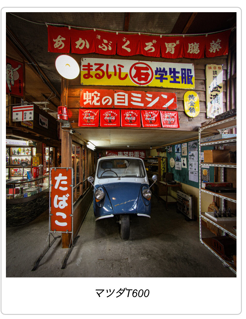 そしてタバコ屋横の車庫には、オート三輪のマツダT600(1963年製)が。この車、2004年に公開された竹内結子主演のファンタジー映画「天国の本屋〜恋火」で使われた車でもある。北海道がロケ地となったこの映画で、このマツダT600は、地上と天国を行き来する乗り物として活躍した。まるで映画「バック・トゥ・ザ・フューチャー」のタイムマシン、デロリアンようだ。
